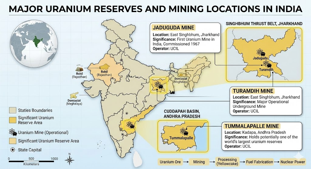 India’s low-grade uranium reserves necessitate imports to sustain its expanding nuclear energy programme. Strategic international agreements, alongside domestic mining and the three-stage programme, remain essential for long-term energy security and technological self-reliance.
